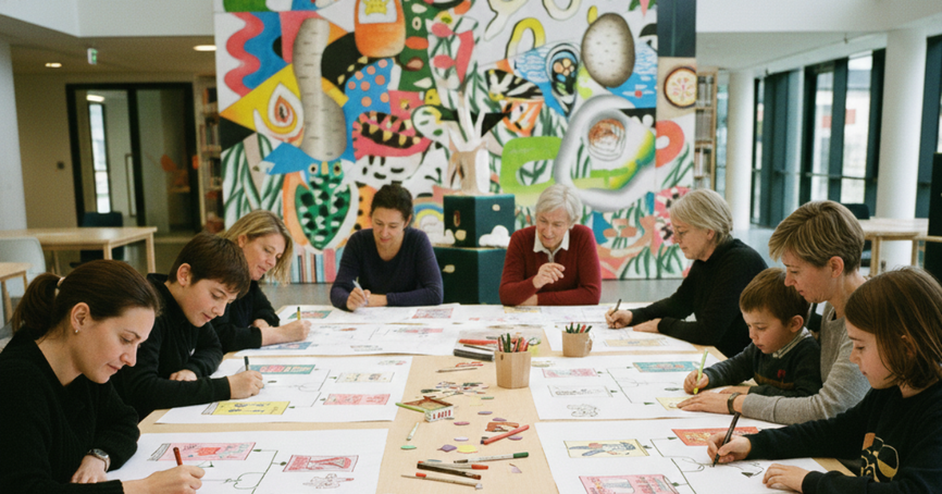À propos Après la lecture d’un album, les enfants seront invité·es à créer un mini‑livre personnel, à remplir selon leur imagination. Iels pourront inventer des paysages réels ou fantastiques,...